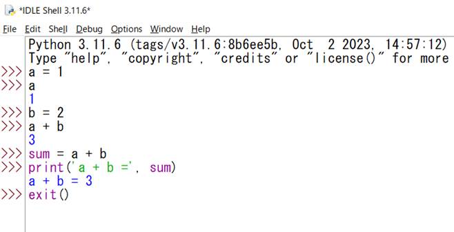 次に実行するスクリプトがあれば、それを入力すればよいが、IDLEを終了するときは、「exit()」と入力する(図A.5)。