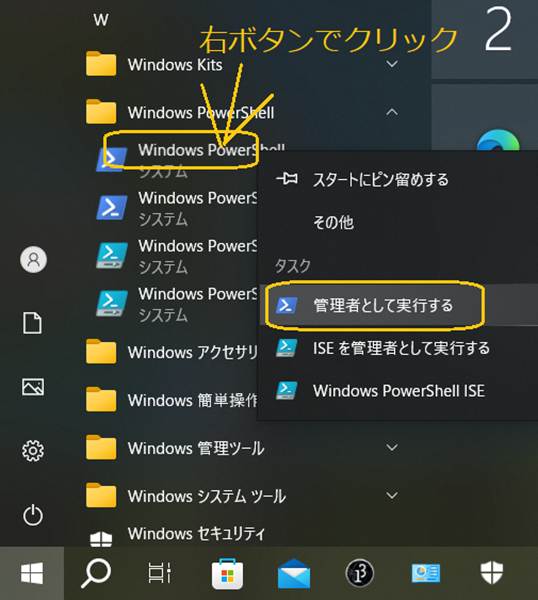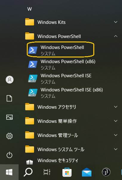 インタラクティブ モードはコンソール端末からでも利用できる。コンソール端末は、Windows PowerShellが使い易い。スタートメニューから「Windows PowerShell」を選ぶ(図C.9)。