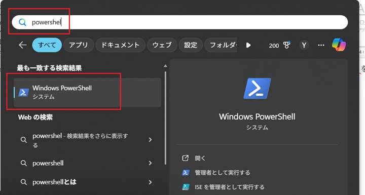 端末ソフトWindows PowerShellをスタートメニュから選んで起動する(図A1)。