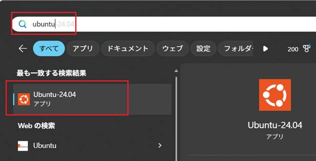 スタートメニュにおいてインストールしたUbuntu-24.04を選び、起動する(図A3)。立ち上げたスタートメニュに表示されないときは、「すべて」を選ぶなどして探す。