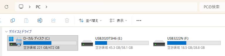 使用PCには、USBメモリが2台接続されているが、表示されていない(図B7)。すなわち、Ubuntuからは見えていない。
