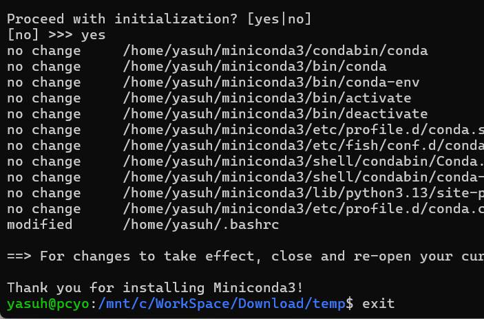 LinuxにMiniconda(Anaconda)をインストールしておくとCmdStanPyなどのモジュール(ライブラリ)の準備(インストール)が簡単になる。MinicondaはAnacondの簡易版である。以下では、Minicondaについて説明するが、Anacondaの場合も同様である。
