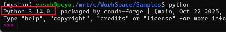 Pythonを起動してバージョンを確認すると、図B6のようにPython 3.14.0と表示される。