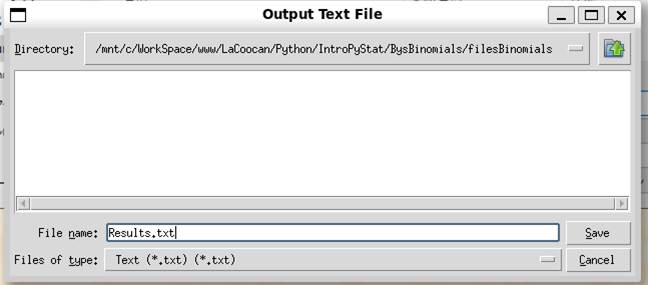 ファイル名を設定して「Save」ボタンをクリックすると、次に、計算結果の出力用テキストファイル名の設定を求めるダイアログウィンドウが表示される(図4)。