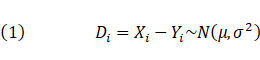 図1の形式のデータを式(1)の確率モデルによりベイズ分析を行うため、モデル(1)に対して本ウェブサイト後半に示すリスト1のStanスクリプトを用意した。本ウェブサイトのスクリプトファイルなどは圧縮ファイルfilesDiffMeanRel.zipにまとめたので、ダウンロード解凍すれば自由に利用できる。