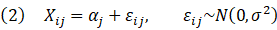 X[i][j] ~ normal(f_a[j], sgm);