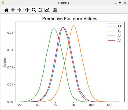 リスト1のStanスクリプトを用いて1要因非繰り返し固定効果モデルのベイズ分析を行うスクリプトを本ウェブサイト後半にリスト2として示した。これらのスクリプトファイルなどは、圧縮ファイルfilesOneFctrFixed.zipとしてまとめた。ダウンロード展開すれば自由に利用できる。PythonにおけるStan(PyStan2)の使い方については<岡本安晴「いまさら聞けないPythonでデータ分析」丸善出版>第10章〜第12章で説明している。