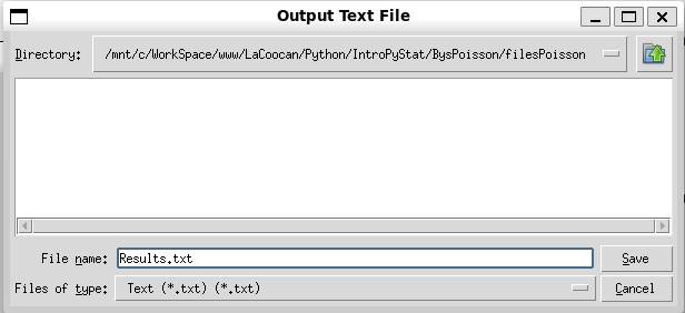 図3のダイアログウィンドウにファイル名を設定して「Save」ボタンをクリックすると、計算結果を保存するためのテキストファイル名の設定を求めるダイアログウィンドウが表示される(図4)。