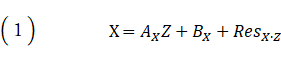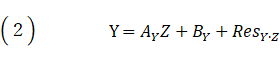 点(Z,X)の散布図が左上、点(X.Z、Y.Z)の散布図が右上に示されている。X.ZとY.Zは、式(1)における残差