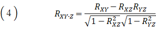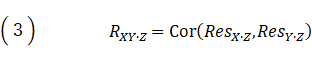 2つの変数XとYの相関係数が、第3の変数Zの影響を除くと相関が無くなることがある。この疑似相関(spurious correlation)に対して、第3の変数Zの影響を単回帰モデルによって変数XとYから除き、その残りの部分について相関係数を求めたものは偏相関係数(partial correlation coefficient)と呼ばれている(Mardia ei al., 1979)。すなわち、2つの単回帰モデル