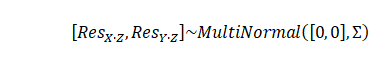 ここでは、式(4)により代数的に偏相関係数を求めるのではなく、ベイズ分析により偏相関係数の事後分布を求める。事後分布から、偏相関係数がどの範囲にあるかの推測を行うことができる。