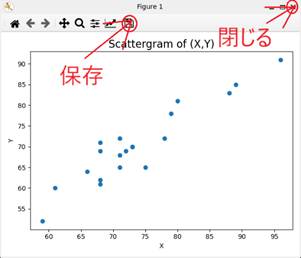 上のコマンドを実行すると、まず、データの散布図が表示される(図1)。
