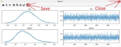When the input data file name is set, building (compilation) of the Stan script starts. After building, MCMC sampling starts. Trace plots are shown like Figure 2