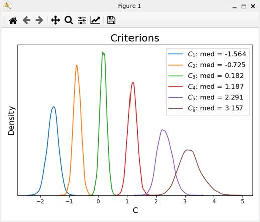 Close the window of ROC curve, graph of posterior distributions of criterion boundaries is displayed (Figure 6).
