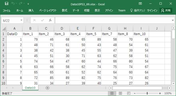 入力データファイルはExcelファイルとして図1のように用意する。なお、図1のデータの再分析もこのウェブサイトの後半に示している。