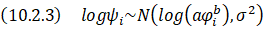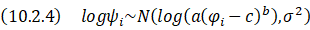 log(MEs[i]) ~ normal(log(a * pow(Sts[i], b)), sgm); // Eq. (10.2.3)
