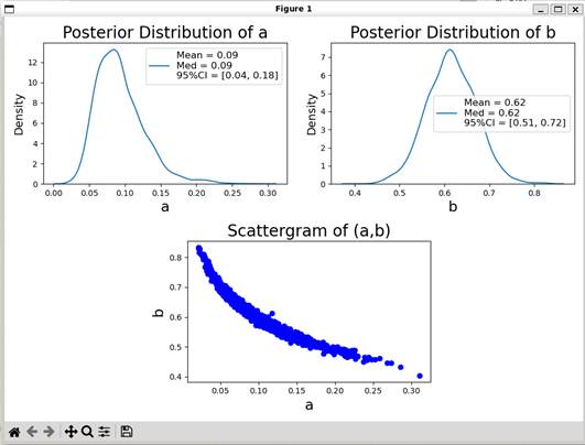 上記の確率モデルをデータに適用して、ベイズ分析によりパラメータ値を求める。ベイズ分析については、<岡本安晴「いまさら聞けないPythonでデータ分析」丸善出版>の題3部、第9章〜第15章、で説明している。
