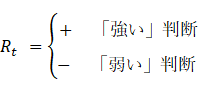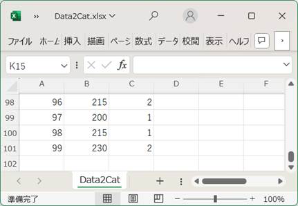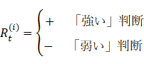 は、「弱い」判断のときは1、「強い」判断のときは2を設定する。データの行の順序は任意である。これは、判断の確率が刺激値のみによって与えられるので、例えば、図2の2行目にある0番目のデータと101行目の99番目のデータを入れ替えても尤度関数値は変わらないからである。
