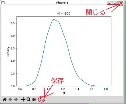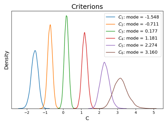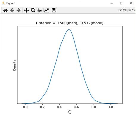 図A.1のフォームを右上角のX印をクリックして閉じると、次に判断基準Cの事後分布のグラフが表示される(図A.2)。
