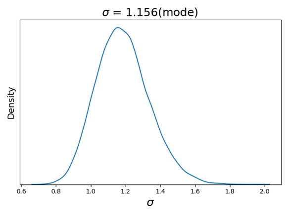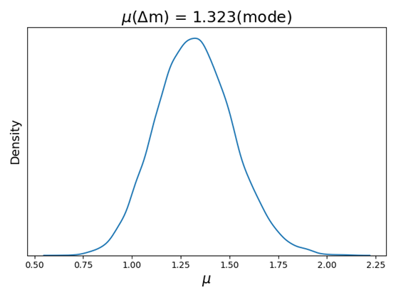 計算が進むと、まずシグナル刺激とノイズ刺激の感覚差d’の事後分布のグラフが表示される(図A.1)。