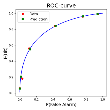 で算出される(Kingdom & Prins, “Psychophysics: A practical introduction, 2nd ed.” 2016, p. 176; Macmillan & Creelman, “Detection Thoery: A user’s guide.” 2005, p. 8)。