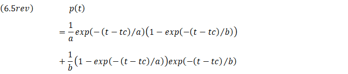 v = (1.0/b)*np.exp(-(t - tc) / b) * (1.0 - np.exp(-(t - tc) / a)) + \