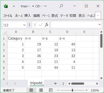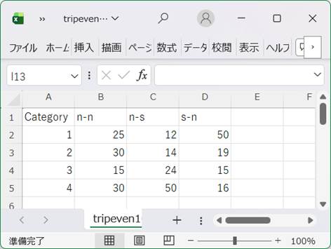 }A1‚ÉAƒtƒ@ƒCƒ‹tripeven100.xlsx‚ðExcel‚ÅŠJ‚¢‚½‚à‚Ì‚ðŽ¦‚·B