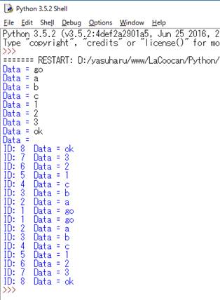 When the empty string “” is read in, pressing the Enter-key immediately after the prompt ‘Data = ‘, the input-data stage ends. The data read in are displayed in the order of the last to the first by the following code.