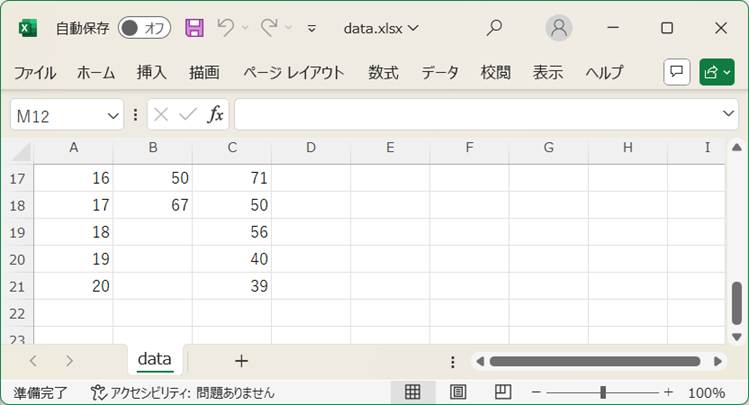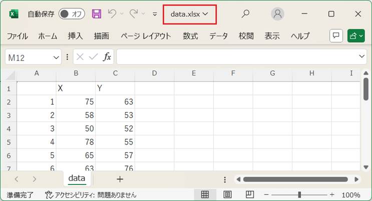 上の例では、data.xlsxが設定されている。入力データファイルは、図1a、図1bの形式で、Excelファイルとして用意する。
