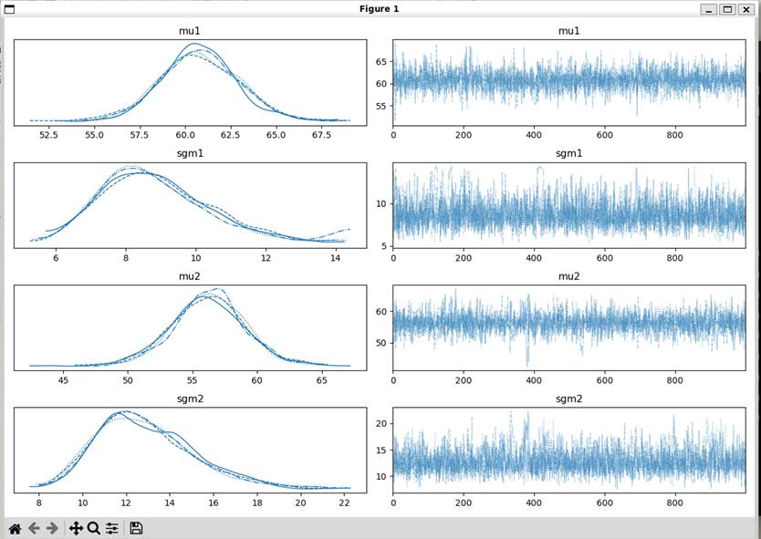 var_names=['mu1','sgm1','mu2','sgm2'])