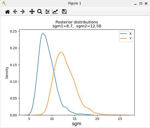 sgm1とsgm2の事後分布のグラフである。