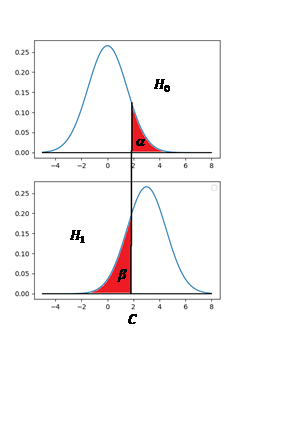 有意水準が大きくなると、差がないのに差があると判断する(False Alarm: FA)確率が高くなる。FAの確率を下げるために、FAの効用をから