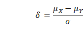 独立な2つのサンプルの平均値の差の効果量は、次式で与えられる。