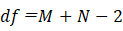 帰無仮説の下では、自由度は対立仮説の非心F分布の自由度と同じであるが、非心度は0のF分布に従う。