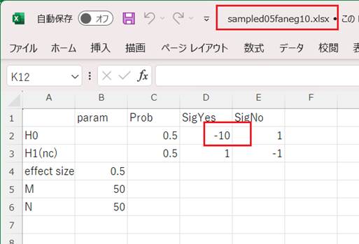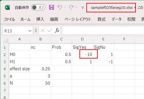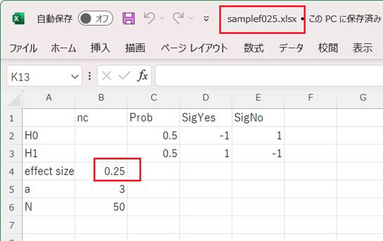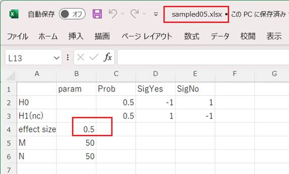 図A1のパラメータ値における効果量0.8の値を0.5に下げたものを図A3のように用意した。