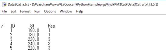 入力データファイルとして、上の例では、図A1のファイルData2Cat.xlsxを設定している。