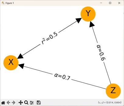 edge_labels={('Z','X'):r'$\alpha$=0.7', # Z -> X のラベル