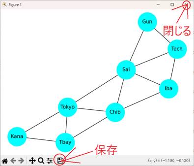 リストB.1 無向グラフのスクリプト(Kanto.py)