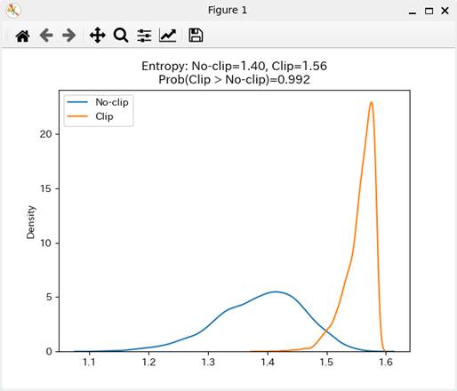plt.title(('Entropy: No-clip={0:.2f},