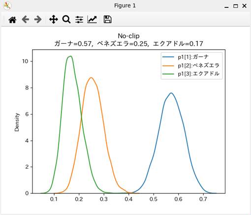 plt.title('No-clip\nガーナ={0:.2f}, ベネズエラ={1:.2f}, エクアドル={2:.2f}'.format(
