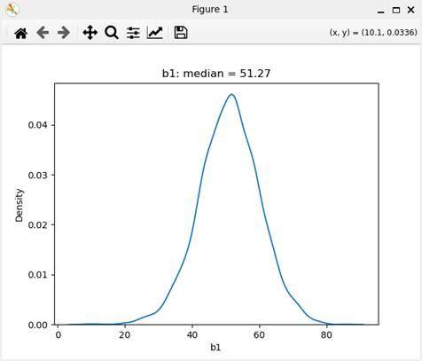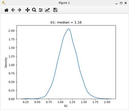 偏回帰係数b1の事後分布のグラフである。