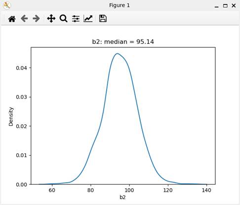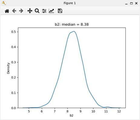 偏回帰係数b2の事後分布のグラフである。