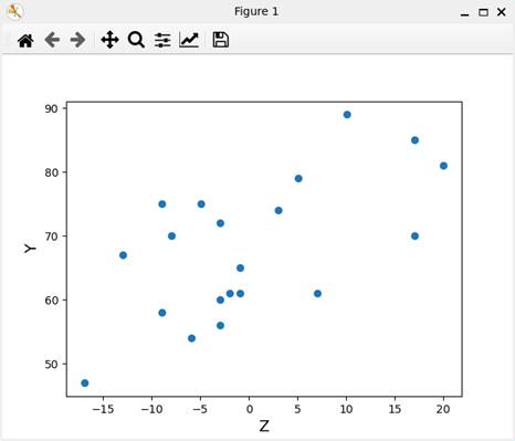 上のコマンドを実行すると、データが読み込まれて図7の散布図が表示される。