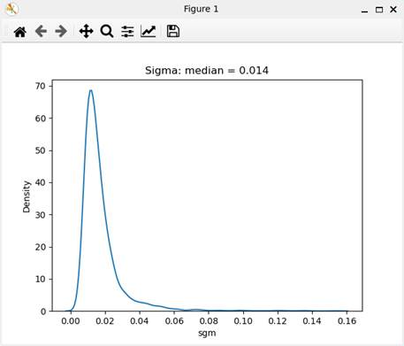 plt.title('Sigma: median = {0:.2}'.format(sgm_hat))