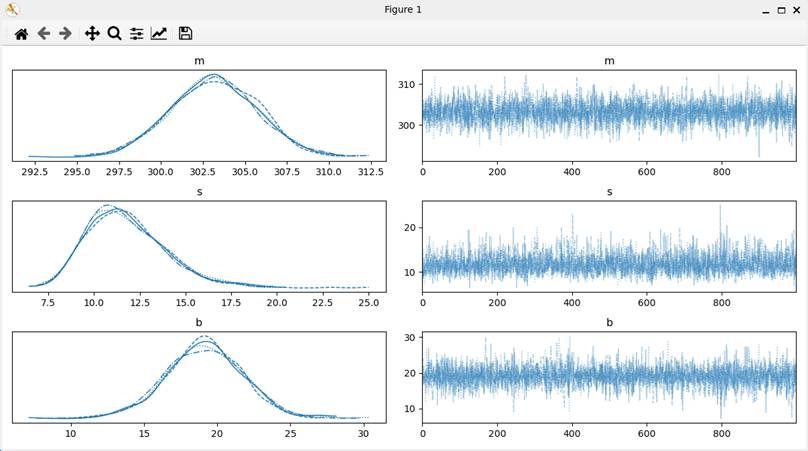 plt.title(f'm = {m_med:.2f}, s = {s_med:.2f}, b = {b_med:.2f}', fontsize = 16)