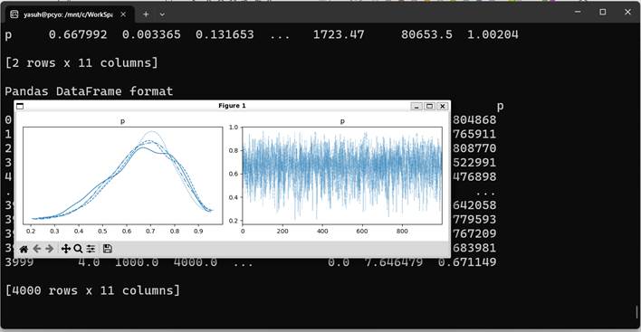 リスト1のStanスクリプトがコンパイルされ(多少時間が掛かる)、実行されると、図1のようにトレース図が表示される。