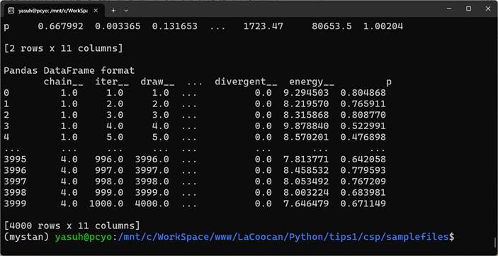 StanをWindowsで利用するためにCmdStanPyをインストールしたが、動作しなかった。WindowsにインストールしたUbuntu上でCmdStanPyをインストールすると、Ubuntu上では利用できた。以下は、その備忘録である。