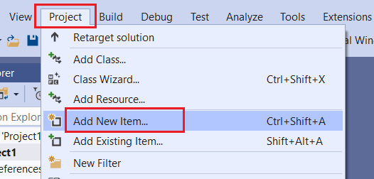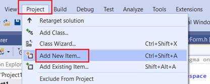gPROJECT|Add New Itemh. gAdd New Itemh window will