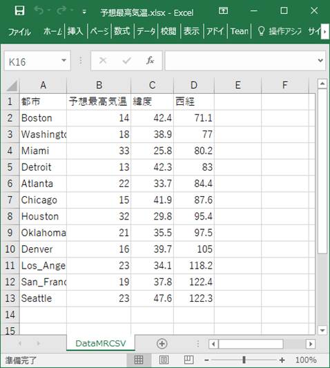 入力データファイル(*.xlsx) = 予想最高気温.xlsx