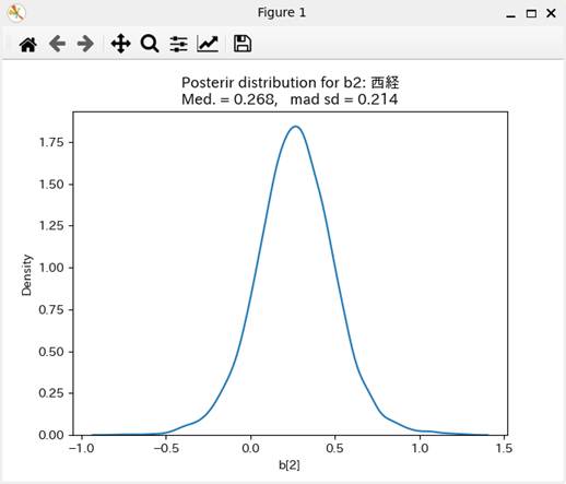 図4のWindowを閉じると、b2の事後分布のグラフが表示される(図5)。